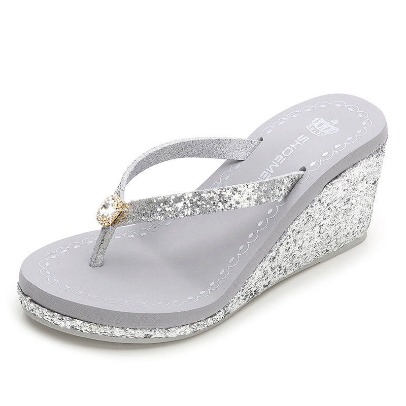 Summer Sequins Rhinestone Women's High Heel Slippers